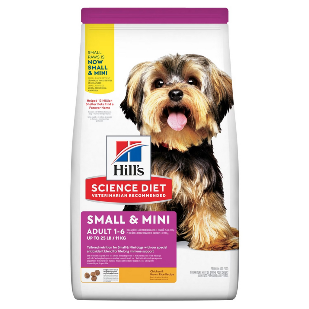 Big on Love, Small in Size. Hill's Science Diet Small & Mini Adult dry dog food is tailored nutrition for the unique needs of Small & Mini dogs during the prime of their life. Specially made with a delightful kibble texture designed for your small dog's unique preferences