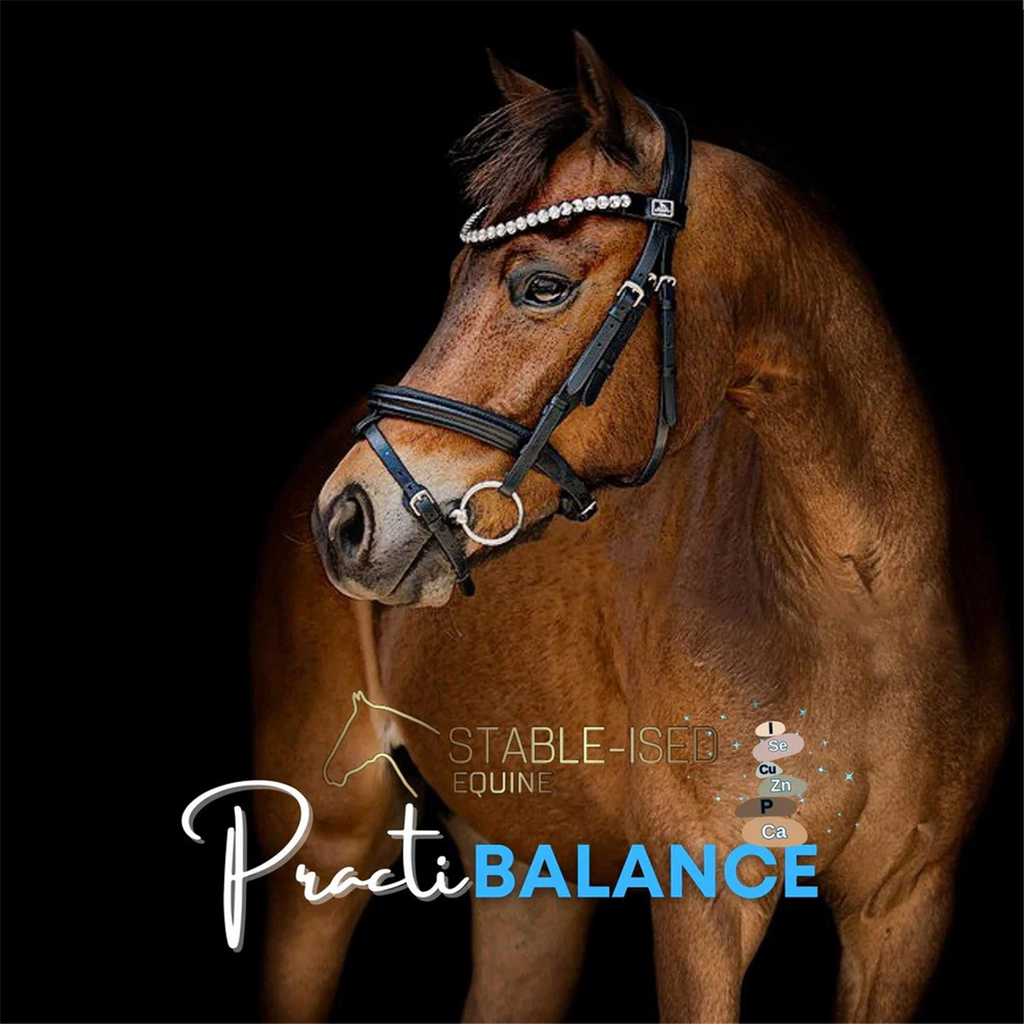 A palatable and grain-free vitamin, mineral, amino acid, and toxin binder balancer supplement specifically formulated to rectify the most common equine nutritional deficiencies and imbalances observed in forage-based diets of pasture and/or hay. Stable-Ised Equine PractiBALANCE is pelleted, making it easy to feed and hard for the horse to sift out of a meal. No more unpalatable and messy powders! Feed out of your hand as a treat for the easy keepers and rest assured knowing that they are receiving a high-quality supplement to take care of their base nutrient requirements.